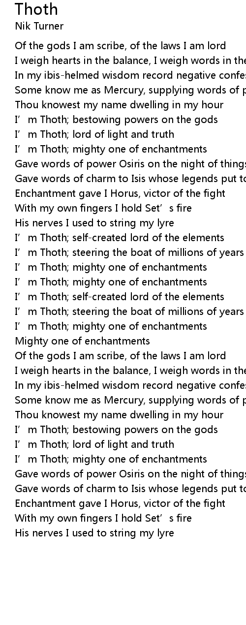 | I' m Thoth lord of light and truth | |
