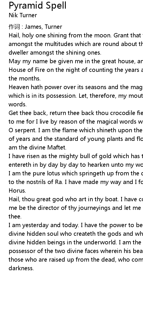 | O serpent. I am the flame which shineth upon the opener of hundreds of thousands of years and the standard of young plants and flowers. Depart ye from me for I am the divine Maftet. | |