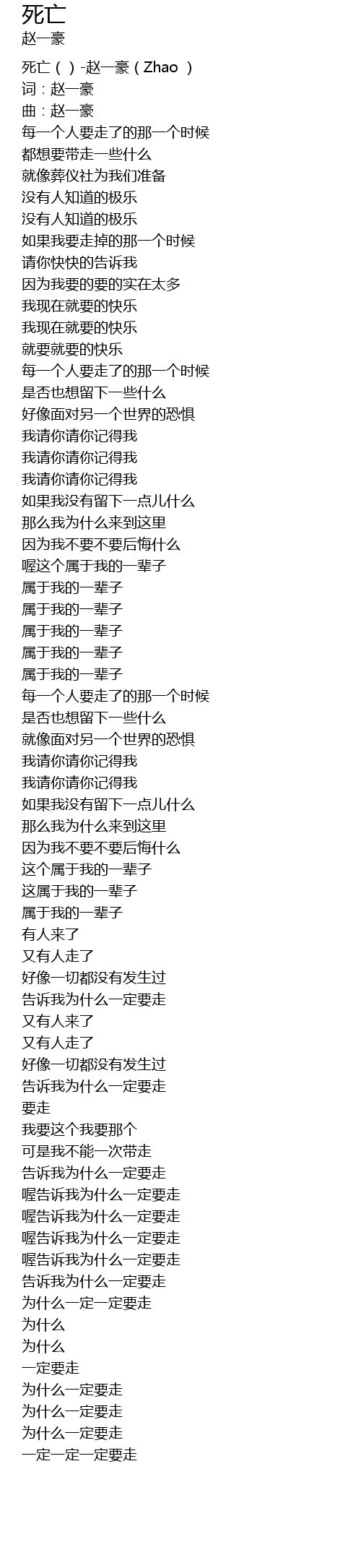 | [00:00.00] | 死亡()-赵一豪(Zhao ) |