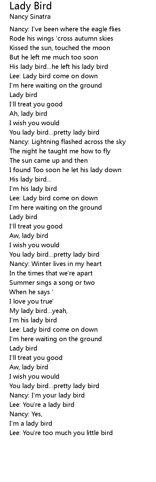 Nancy: I'm your lady bird |