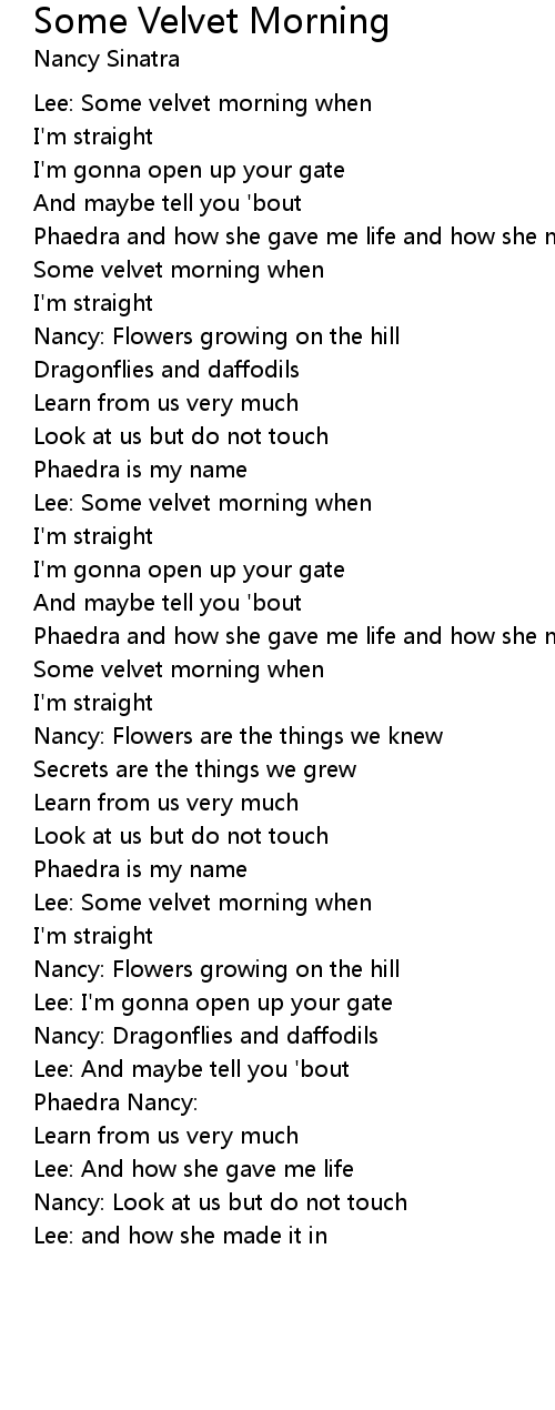Lee: Some velvet morning when |