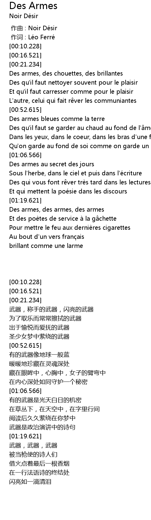 | 歌曲 | Des Armes |