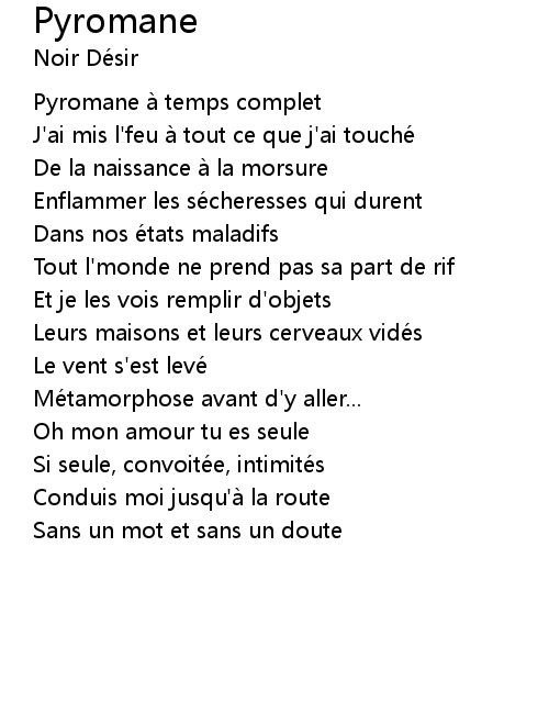 | J' ai mis l' feu a tout ce que j' ai touche | |