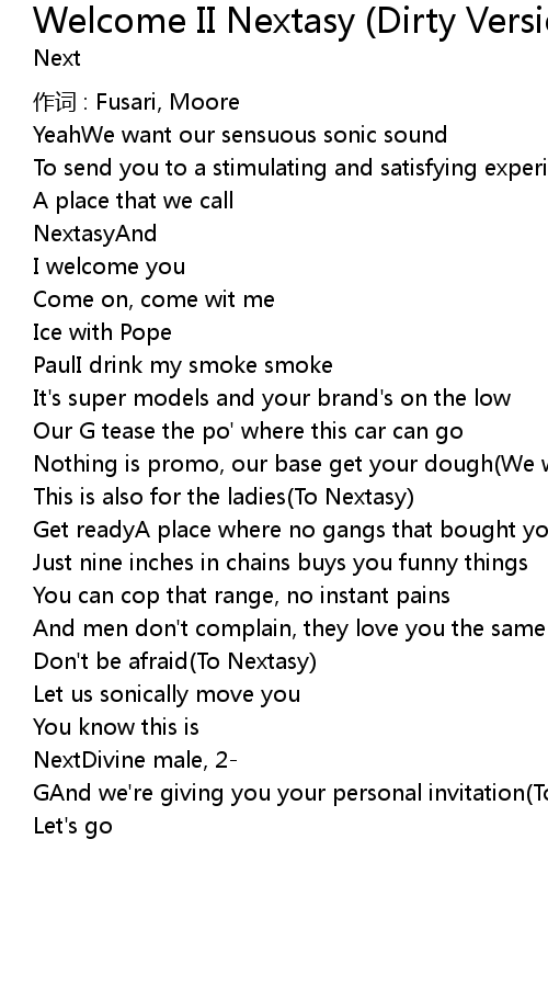 | 歌曲 | Welcome II Nextasy (Dirty Version/Intro) |