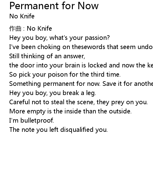 | 歌曲 | Permanent for Now |