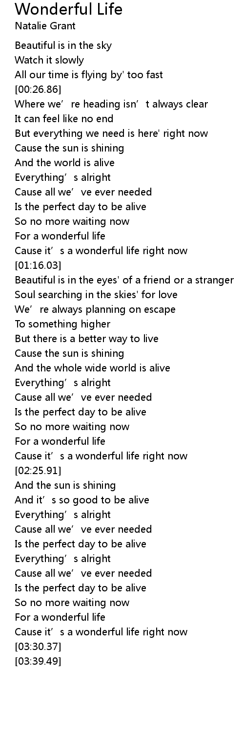 | [03:25.18] | Cause it’s a wonderful life right now |