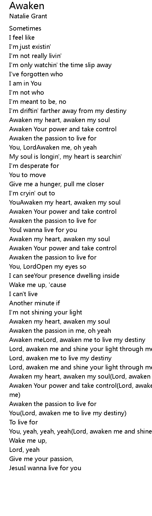 YouAwaken my heart, awaken my soul |