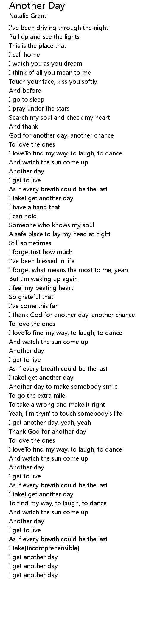 I get another day |