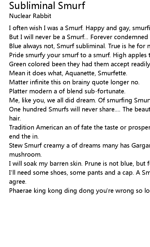 Blue always not, Smurf subliminal. True is he for not him mistake. |