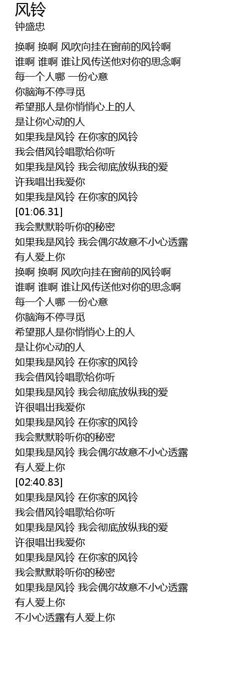 | [01:02.61] | 如果我是风铃 在你家的风铃 |