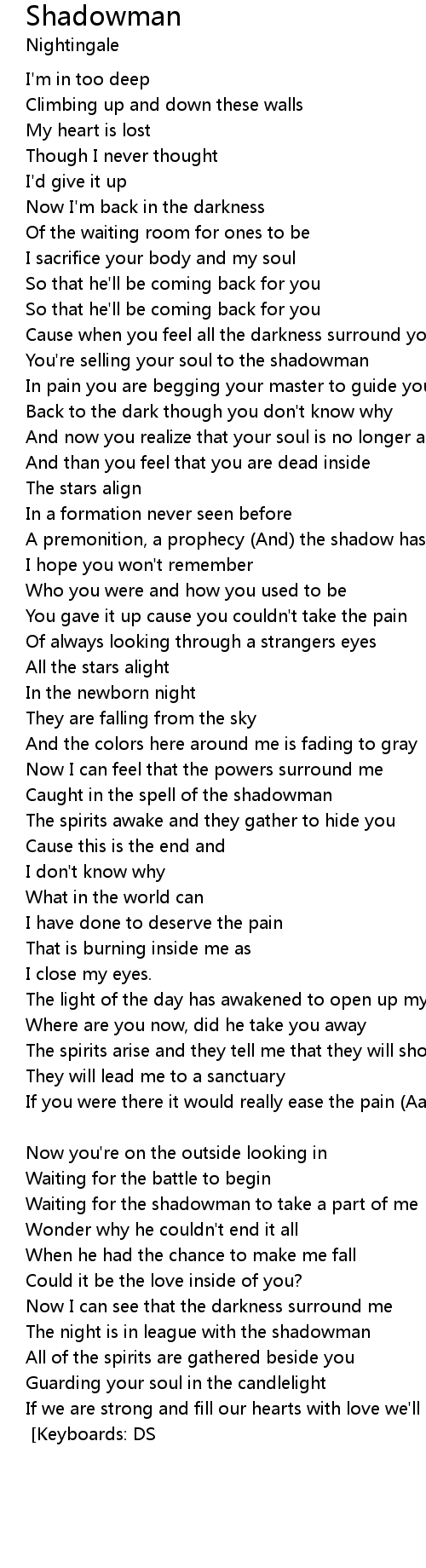 The night is in league with the shadowman |