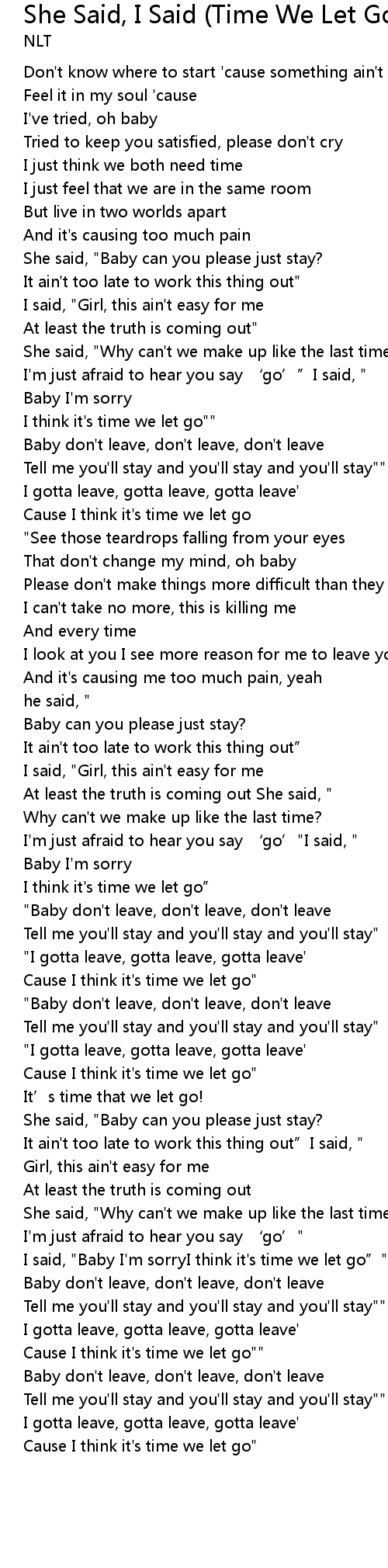 | [03:11.81] | I said, " Baby I' m sorryI think it' s time we let go"" |