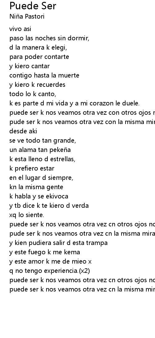| puede ser k nos veamos otra vez cn la misma mirada.(x2) |