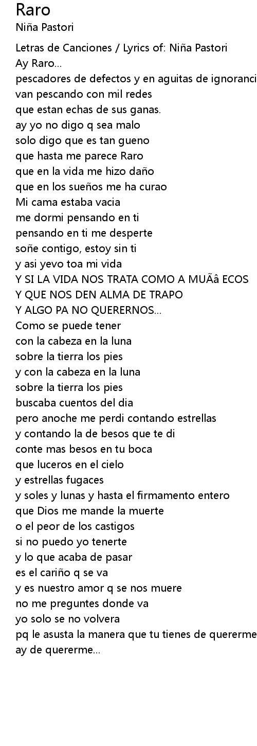 | Letras de Canciones Lyrics of: Ni a Pastori | |