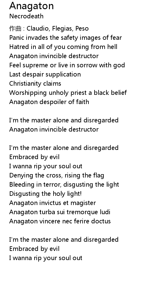 | Anagaton belligera sperbus hasta [Chorus:] | |