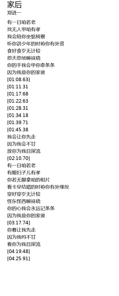 | [03:42.52][01:34.18] | 阮的一生献乎恁兜 |