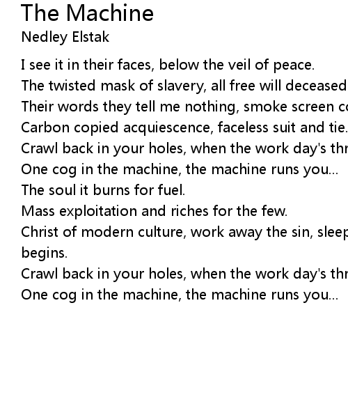 Christ of modern culture, work away the sin, sleep away the anger, work day soon begins.