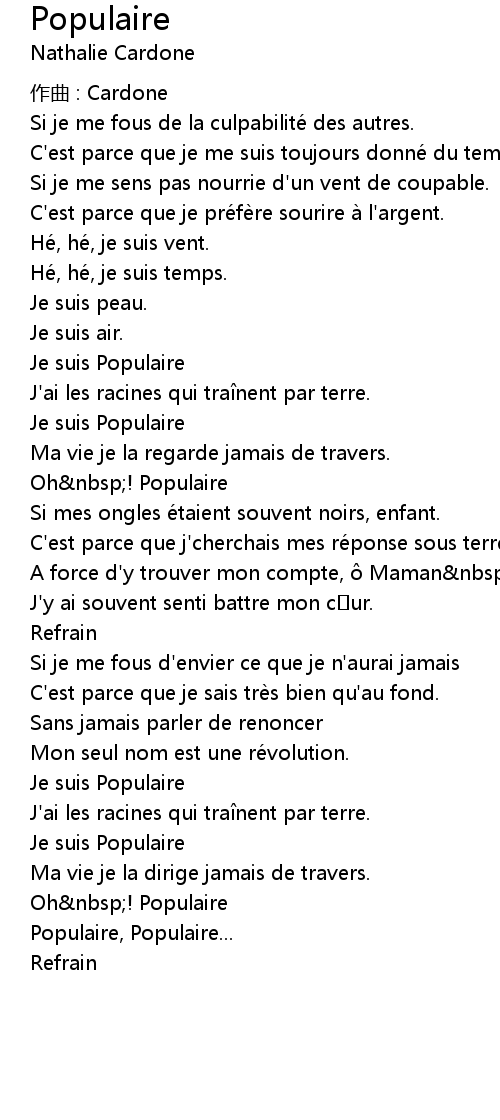 | 歌曲 | Populaire |