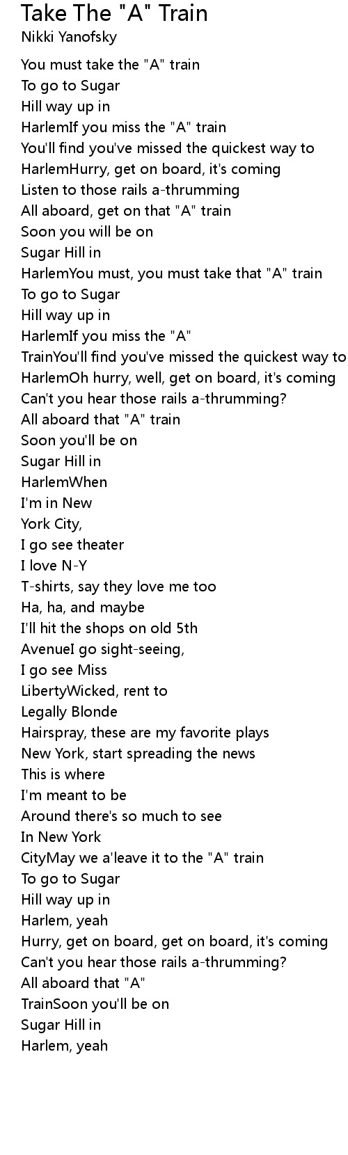 CityMay we a'leave it to the "A" train |