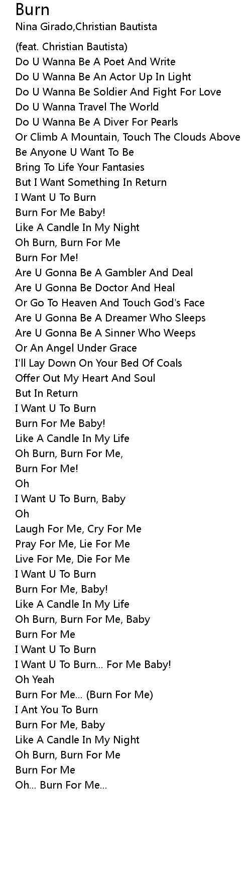 Oh Burn, Burn For Me, |