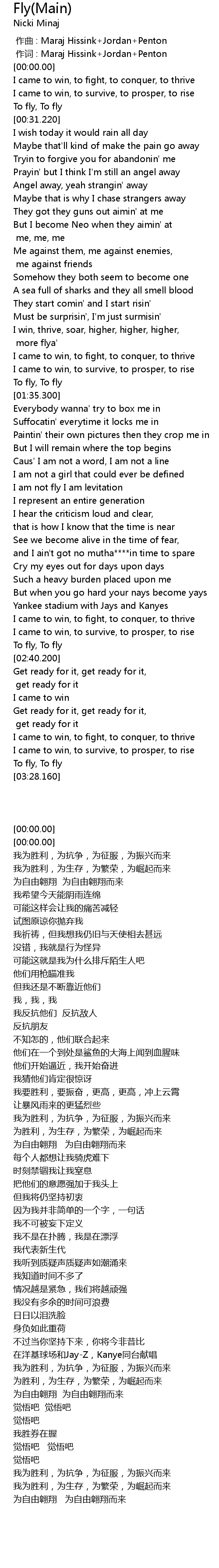 | [03:04.330] | I came to win, to survive, to prosper, to rise |