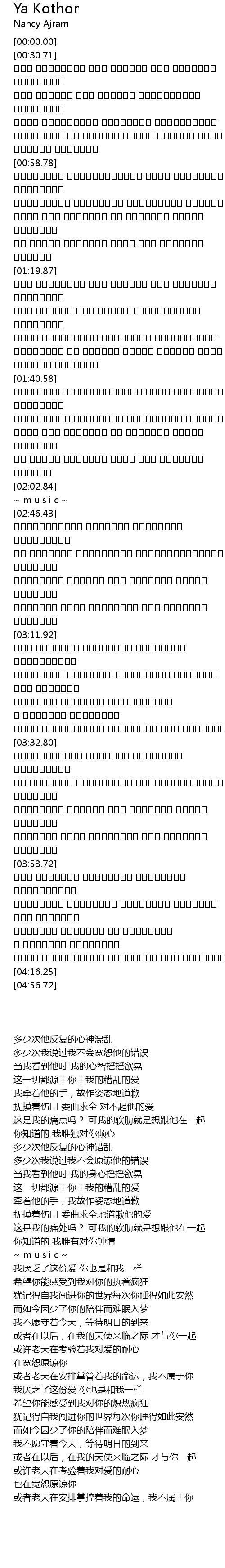 | 歌曲 | Ya Kothor |