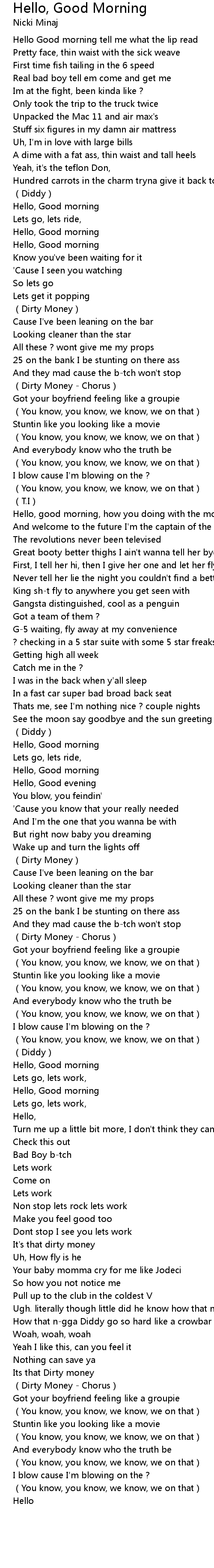 | Great booty better thighs I ain' t wanna tell her bye | |