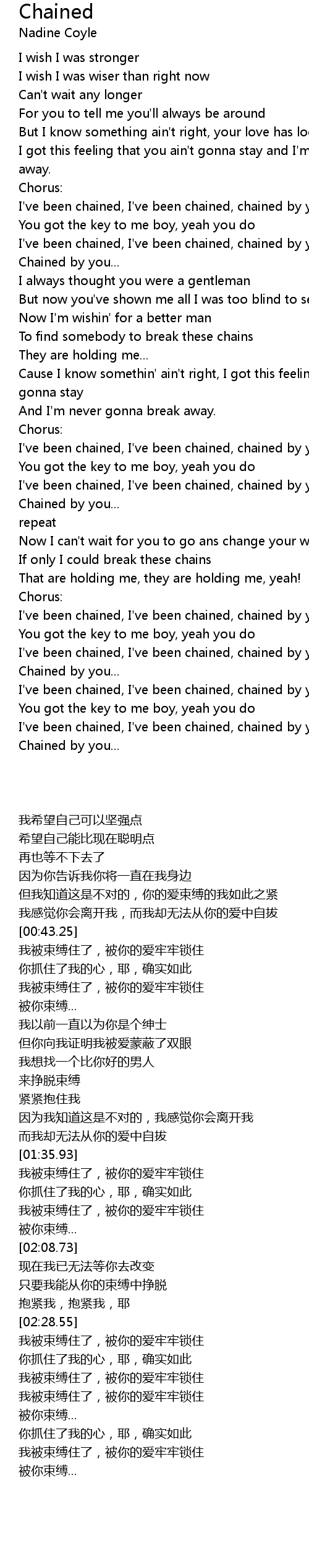 I've been chained, I've been chained, chained by you |