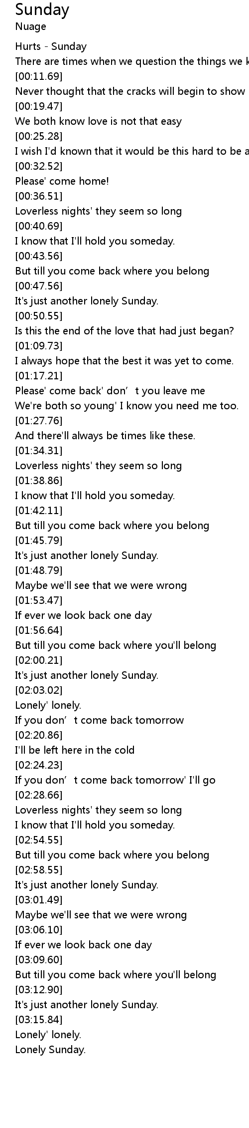| [03:13.90] | It's just another lonely Sunday. |