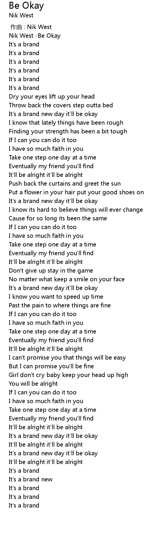 | [00:39.883] | It' s a brand new day it' ll be okay |