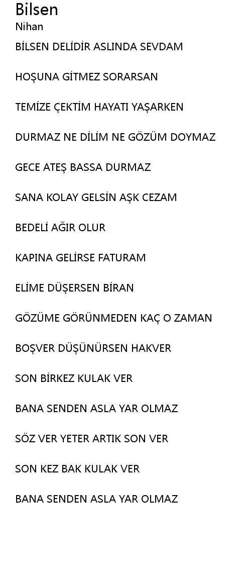 | BİLSEN DELİDİR ASLINDA SEVDAM | |