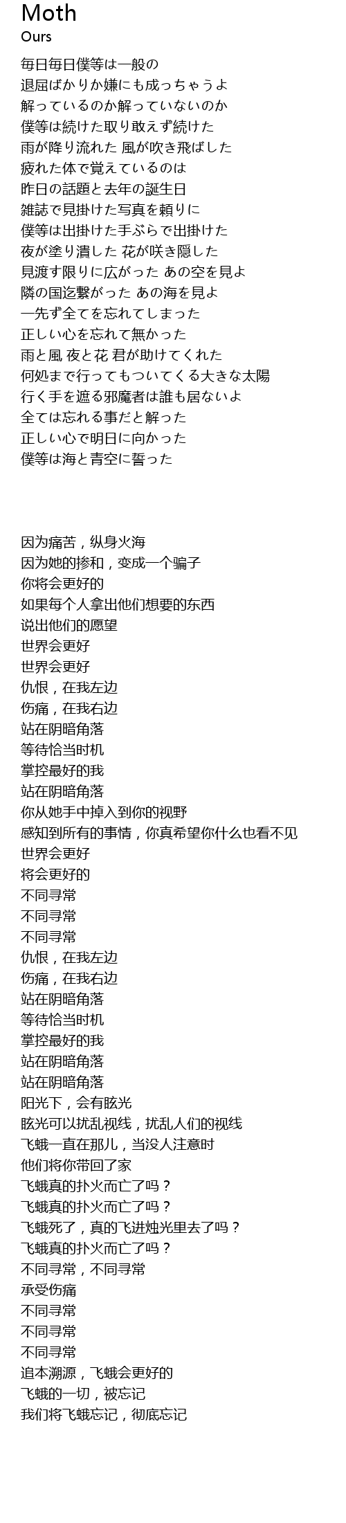 | 歌曲 | Moth |