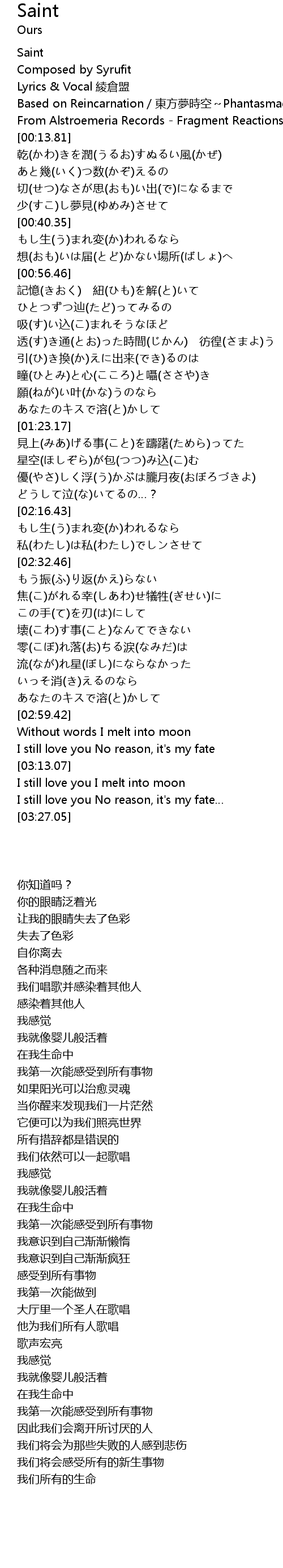 | [00:00.11] | Saint |