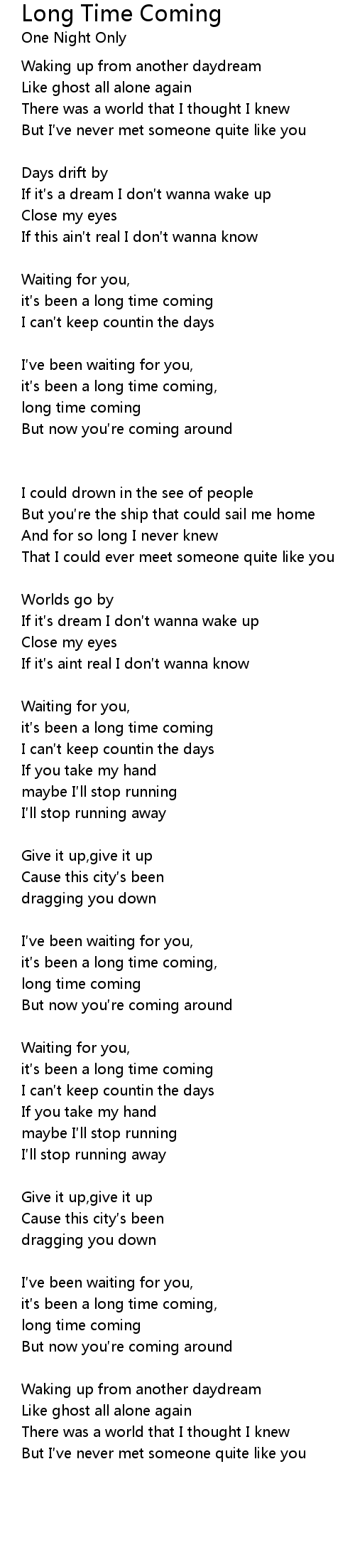 | long time coming | |