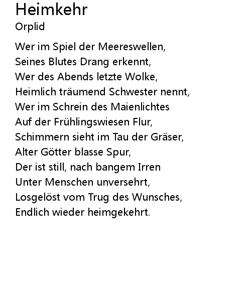 | Heimlich tr umend Schwester nennt, | |