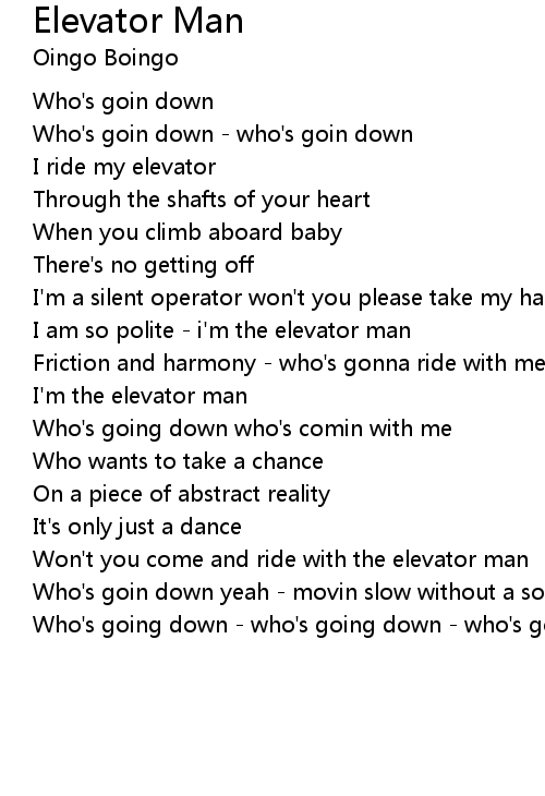 Won't you come and ride with the elevator man |