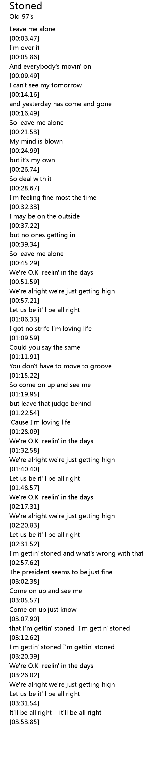 that I'm gettin' stoned I'm gettin' stoned |