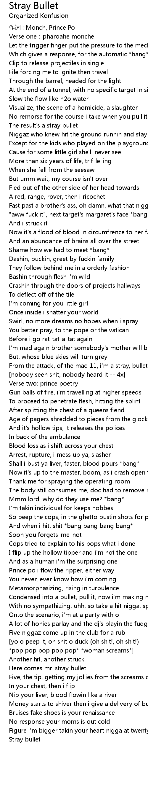 | From the attack, of the mac-11, i'm a stray, bullet | |