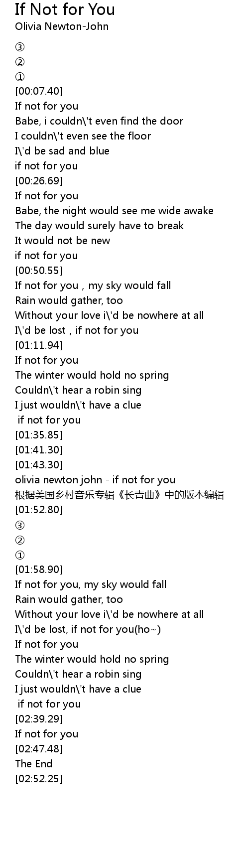 | [01:43.60] | olivia newton john if not for you |