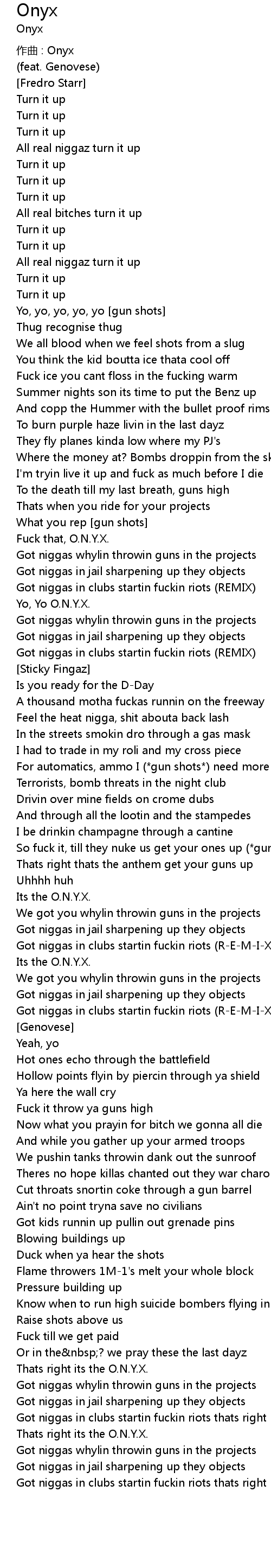 | 歌曲 | Onyx |