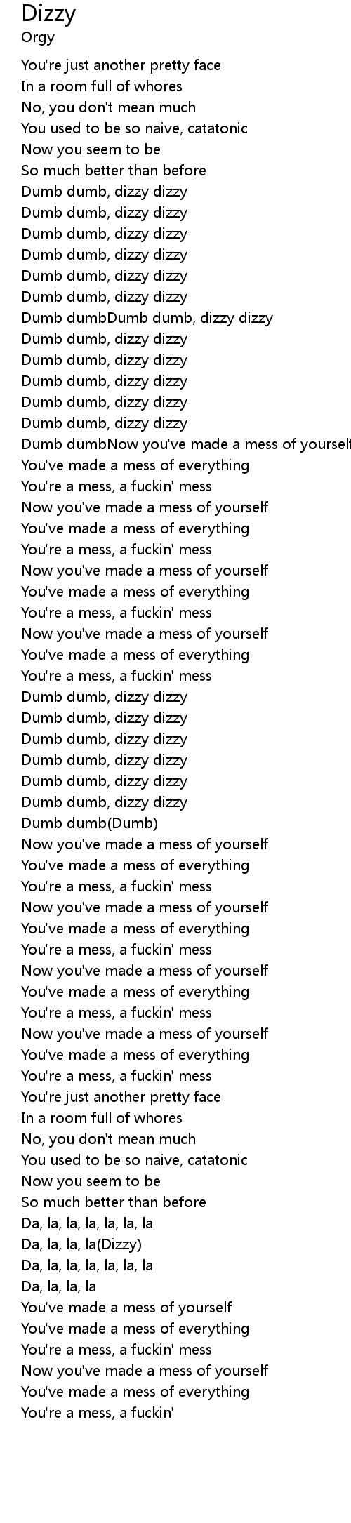 Dumb dumbDumb dumb, dizzy dizzy