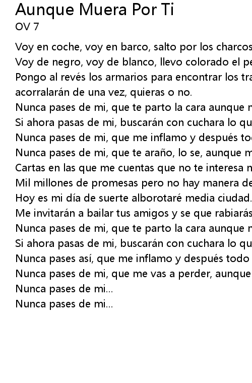 | Nunca pases de mi, que te ara o, lo se, aunque muera por ti. | |