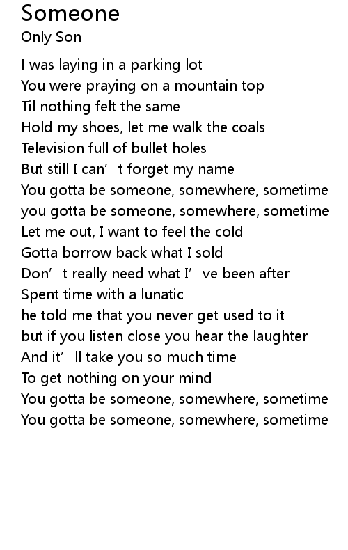 | You gotta be someone, somewhere, sometime |