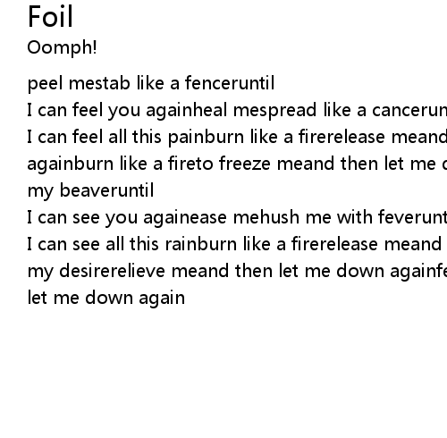 | I can feel all this painburn like a firerelease meand then let me drown againburn like a fireto freeze meand then let me drown againtease mecrush down my beaveruntil | |