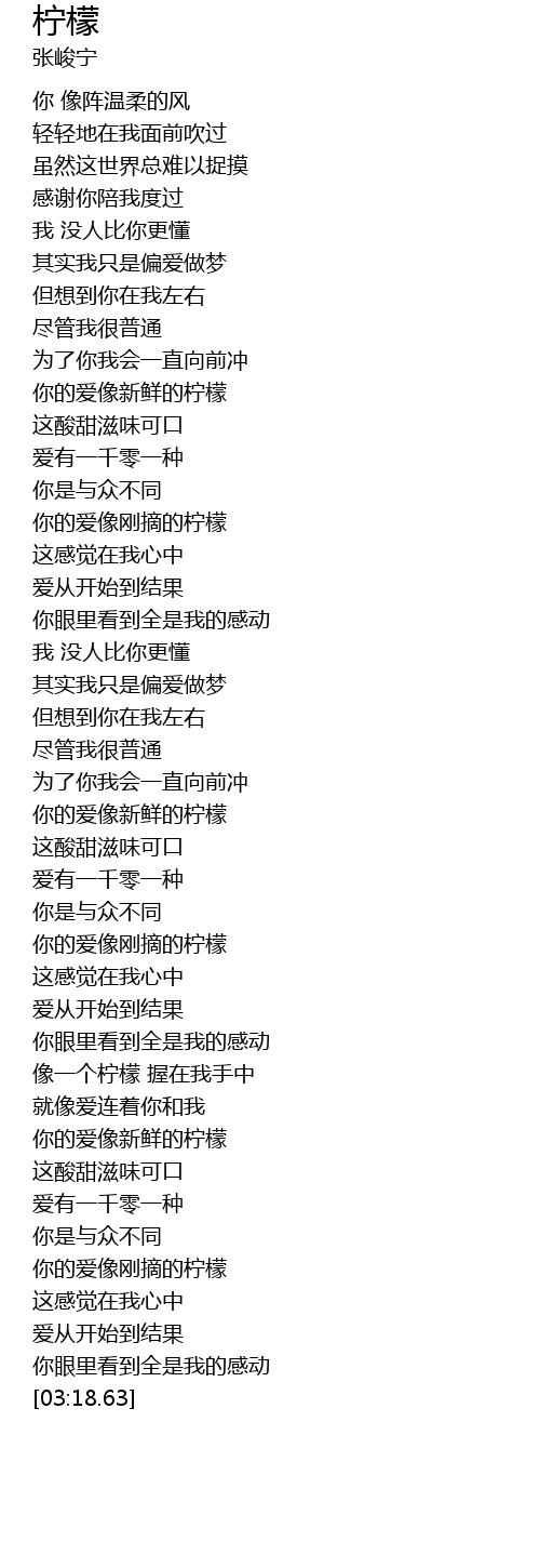 | [03:00.63] | 你的爱像刚摘的柠檬 |
