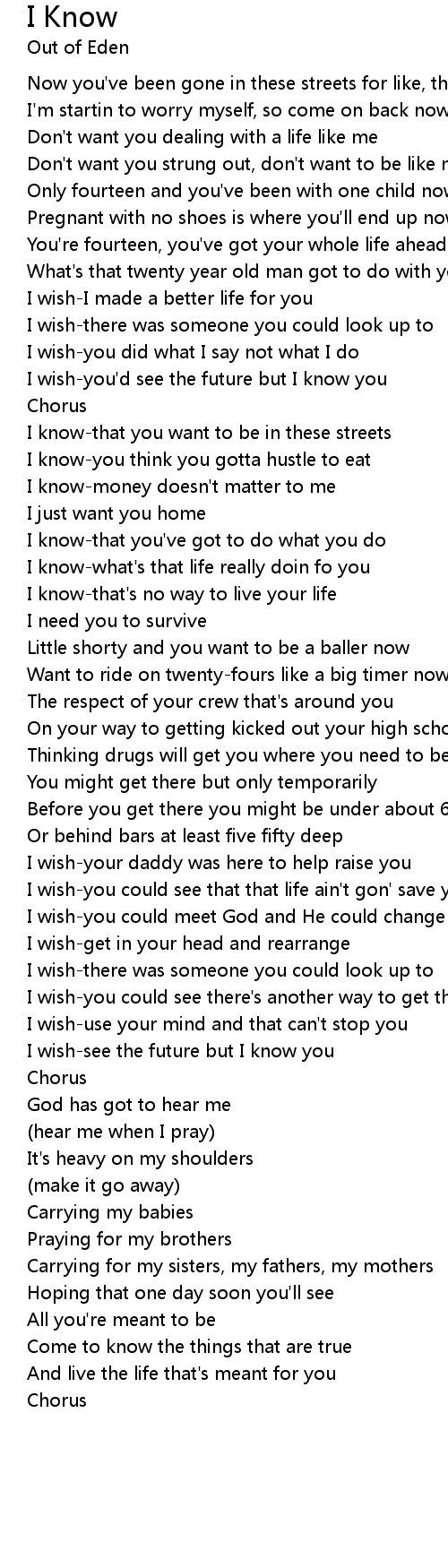 I know-what's that life really doin fo you |