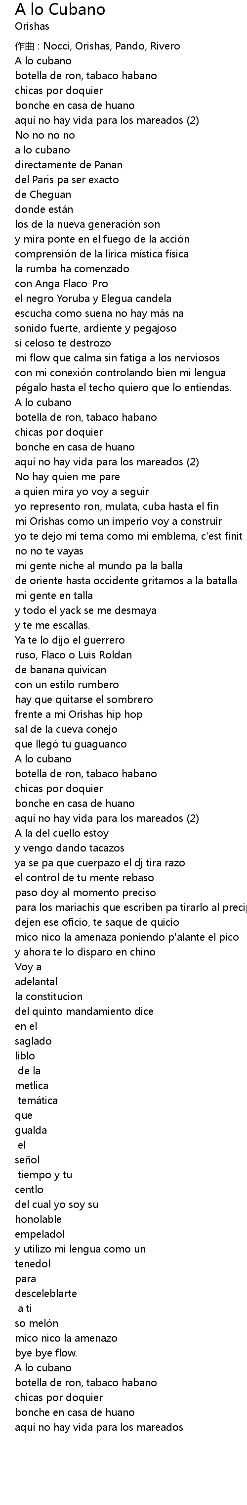 | 作曲 : Nocci, Orishas, Pando, Rivero | |