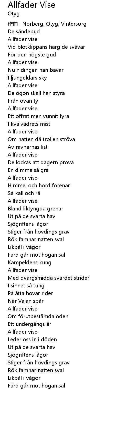 | 作曲 : Norberg, Otyg, Vintersorg | |
