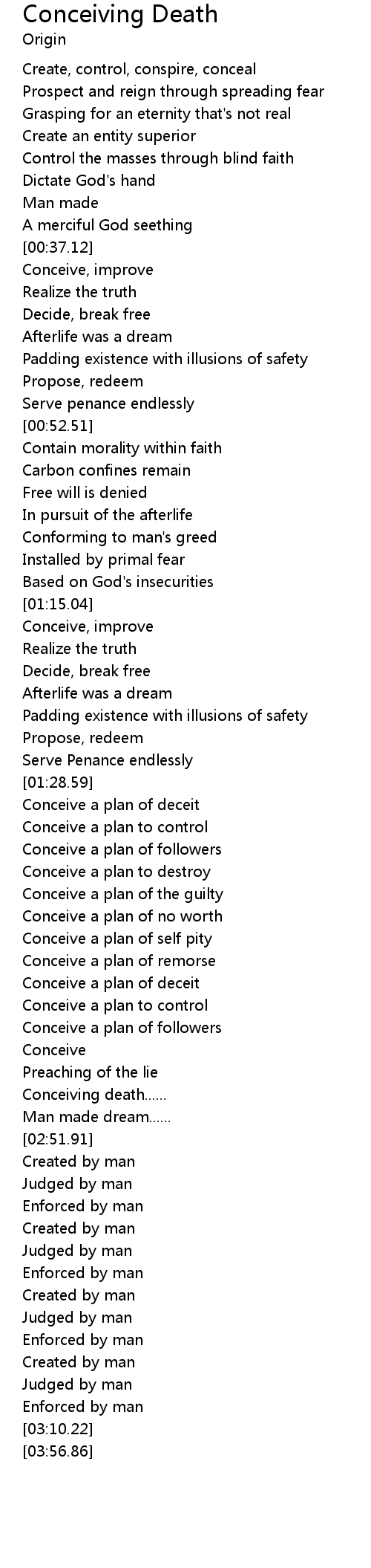 | [02:35.88] | Conceiving death...... |