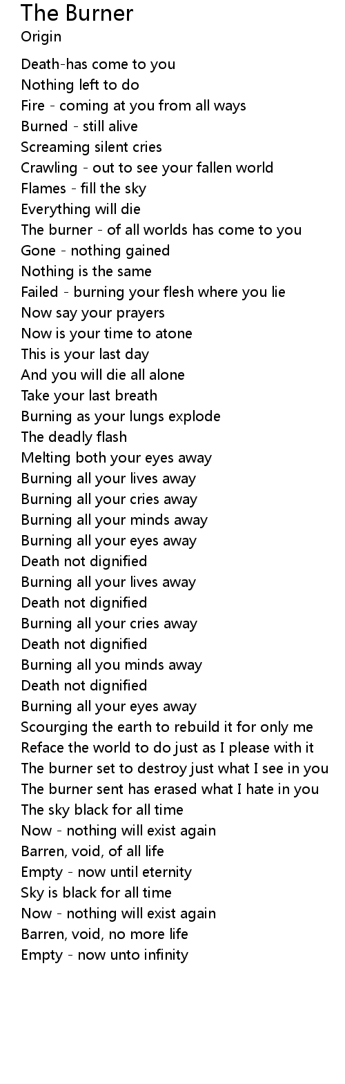 The burner - of all worlds has come to you |